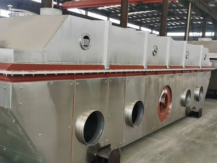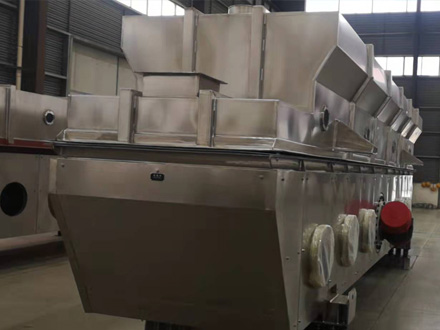 物料自進(jìn)料口進(jìn)入機(jī)內(nèi),在振動(dòng)力作用下,物料沿水平方向拋擲向前連續(xù)運(yùn)動(dòng)。熱風(fēng)向上穿過(guò)流化床和濕物料換熱,濕空氣經(jīng)旋風(fēng)分離器除塵后由排…